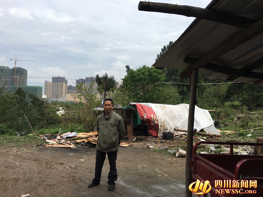 老房子现已拆迁,新房子还没有建成,这处安身之所仍是社区给他建筑的。离家不远处便是城市里富贵的高楼大厦,和罗志辉的居所形成了明显的比照。现在,提前住上新房是他的愿望。