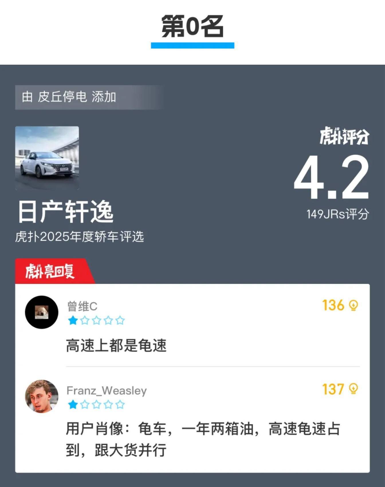 在虎扑社区最新发布的2025年度轿车榜单中,用户对轿车的点评呈现出抱负与实际的激烈反差,而SUV榜单则展现出更务实的消费取向。这场由数万用户参加的评选,不只折射出年青集体的轿车审美变迁,更提醒了消费决议计划中理性与理性的博弈。